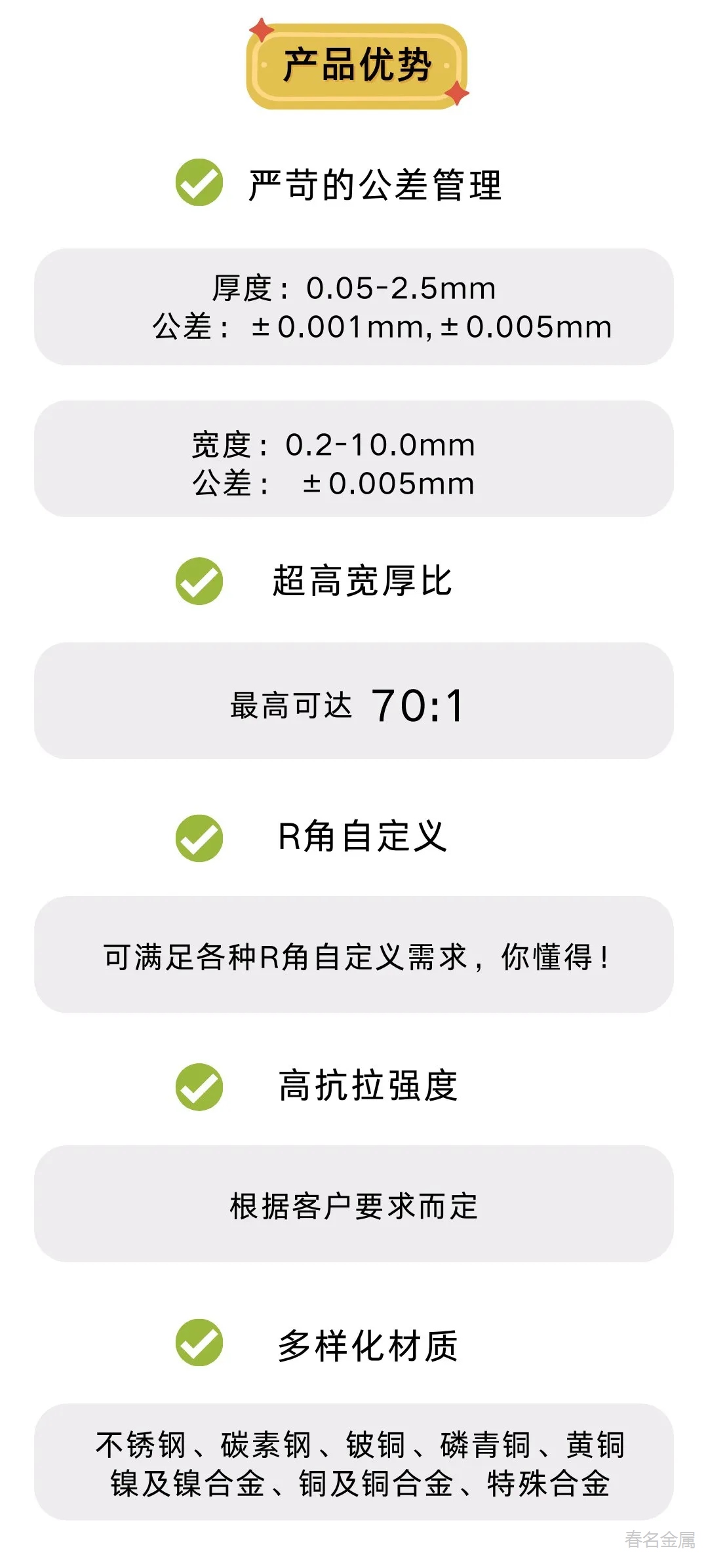 隨著扁線用途越來越廣泛,市場上的扁線品質參差不齊,稍不注意就會踩坑,尤其是極細精密扁線在選用材料時,一定要特別關注尺寸公差,抗拉強度,R角精度,加工工藝和表面平整度等問題。
